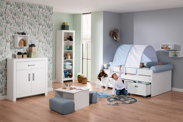 Ein Spiel-, Etagen oder Hochbett kann Abenteuerzone, Lernbereich und Kuschelplatz in einem sein. Möbel, die sich deinem Kind und seinem Alter anpassen, schenken dir langfristige Flexibilität und sorgen gleichzeitig für ein harmonisches Raumgefühl.