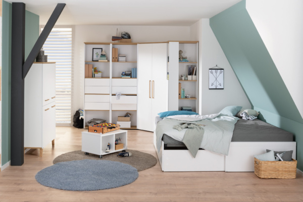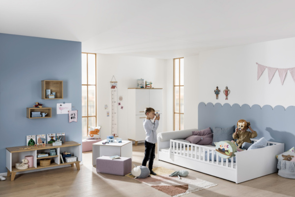 Ein Kinderzimmer wird erst dann wirklich gemütlich, wenn es Persönlichkeit zeigt. Lieblingsbücher, Kuscheltiere oder selbst gestaltete Bilder geben dem Raum Seele und machen ihn einzigartig. Wandboxen und offene Regale eignen sich perfekt für dekorative Lieblingsstücke, die täglich Freude bereiten.
