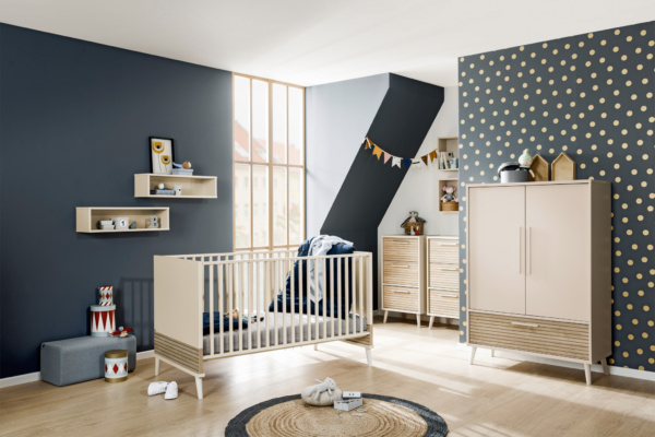 Holz und hochwertige Materialien schaffen eine warme, natürliche Atmosphäre, die dein Kind erdet und beruhigt. Echtholzdetails – wie im Programm Stiene – bringen ein Stück Natur ins Kinderzimmer und wirken gleichzeitig modern und zeitlos.