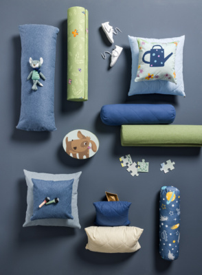 Textilien verwandeln das Kinderzimmer in eine Wohlfühloase. Weiche Kissen, Spielzelte oder Motiv-Vorhänge fürs Hochbett machen den Raum einladend und regen das imaginative Spiel an.
